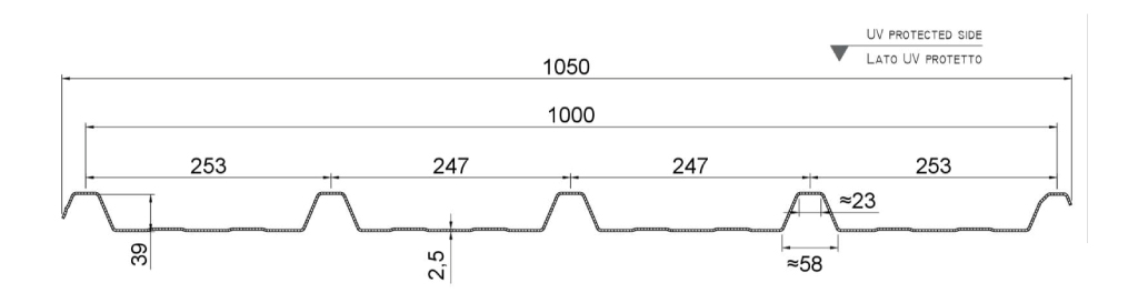 The multiwall structure of these sheets offers many advantages in terms of thermal insulation, limited condensation formation (compared to the same solid corrugated polycarbonate shapes), robustness and load resistance.